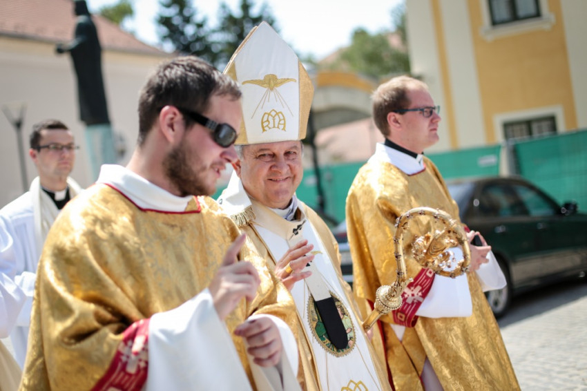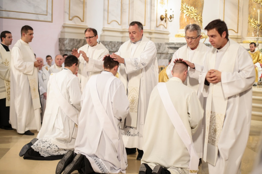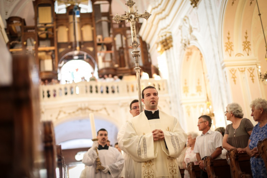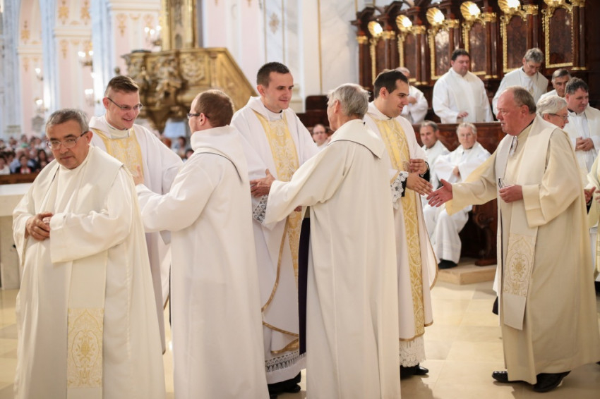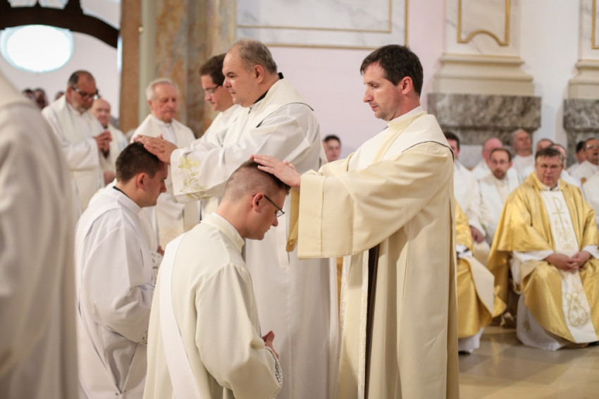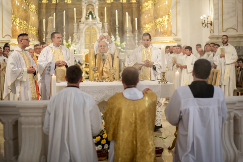 Kettős ünnepet ültek június 25-én a kalocsai Nagyboldogasszony-főszékesegyházban. A hívek 5 év után birtokba vehették a kívül-belül megújult „székest”, s tehették ezt három fiatal pappá szentelésének alkalmából. Csorba Dávid, Marton Gábor és Kőhegyi Dániel a templom megáldásának napján részesültek a papi rend szentségében. A székesegyházat zsúfolásig megtöltötték a zarándokok: összegyűlt a Kalocsa-Kecskeméti Főegyházmegye papsága, a szentelendők hozzátartozói, növendéktársai, az egyházmegye hívei és számos vendég.