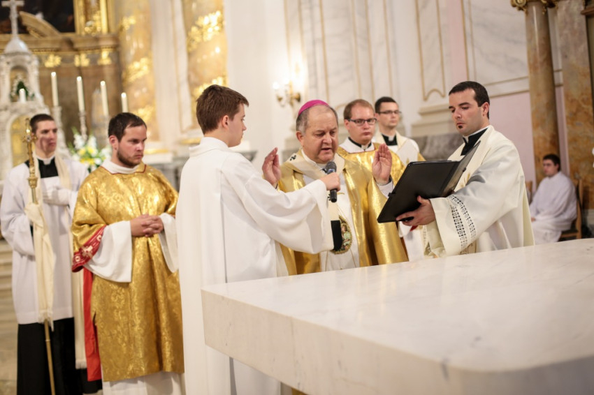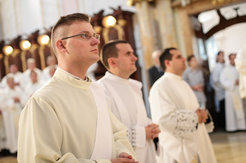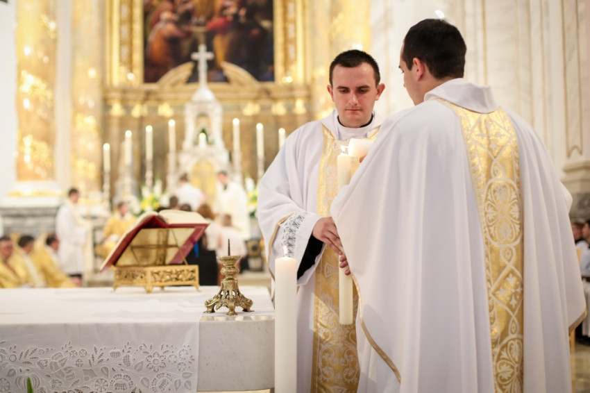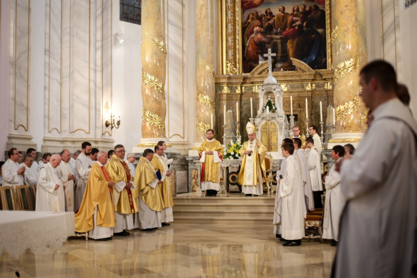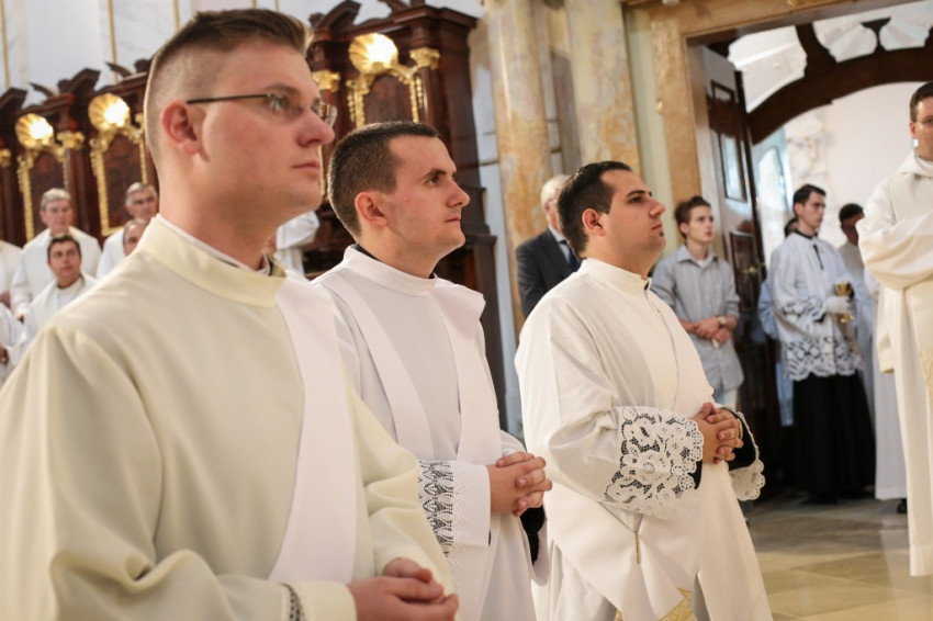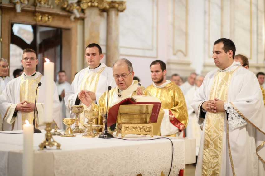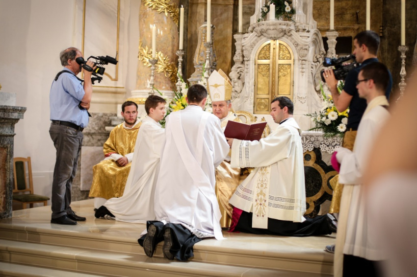 Kettős ünnepet ültek június 25-én a kalocsai Nagyboldogasszony-főszékesegyházban. A hívek 5 év után birtokba vehették a kívül-belül megújult „székest”, s tehették ezt három fiatal pappá szentelésének alkalmából. Csorba Dávid, Marton Gábor és Kőhegyi Dániel a templom megáldásának napján részesültek a papi rend szentségében. A székesegyházat zsúfolásig megtöltötték a zarándokok: összegyűlt a Kalocsa-Kecskeméti Főegyházmegye papsága, a szentelendők hozzátartozói, növendéktársai, az egyházmegye hívei és számos vendég.