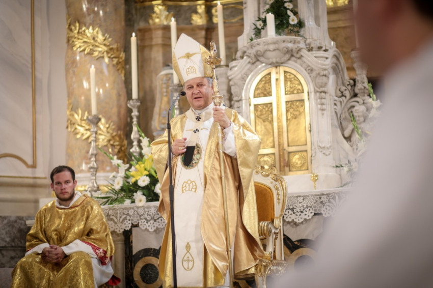 A barokk székesegyház mást is üzen: a felújítás során végzett feltárási munkának köszönhetően ezeréves múltunk emlékei kerültek felszínre: a Szent István-kori székesegyház, a középkori gótikus falak maradványai. Azt üzenik ezek a kövek, hogy Isten ezer éven át ezzel a templommal is megmutatta népünket kísérő, hathatós segítségét. A meghatottság hangján szólt a főpásztor arról, hogy itt járt egykoron Szent István, itt élt a neki koronát hozó első érsekünk, Asztrik, és innen indultak történelmünk fontos eseményei. Felidézte a török kor után templomait, papságát vesztett, pusztává tett egyházmegyét, melyet a mindenkori kalocsai érsekek munkája emelt fel. Ők tudták, hogy elsőként a templomot kell felépíteniük – mondta Bábel Balázs.