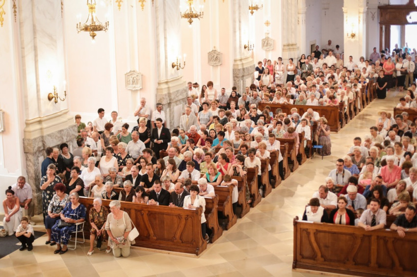 „Nem akármilyen templomban ünneplünk ma” – hangsúlyozta Bábel Balázs. Évekig vártunk arra, hogy beléphessünk szép, de romos állapotából egykori pompájába visszaállított belső terébe. A Nagyboldogasszony-főszékesegyház a Kalocsa-Kecskeméti Főegyházmegye főtemploma. „Sokan a leányok közül gyűjtöttek kincseket, te valamennyit felülmúltad” – idézte a szentély diadalíve feletti feliratot az érsek. Kifejezi ez templomunk rangját, de utal Máriára is, hiszen a barokk székesegyházat Mária mennybevétele tiszteletére szentelték. Mária ugyanis a legtöbbet adta a világnak, magát Jézust – mondta a főpásztor.