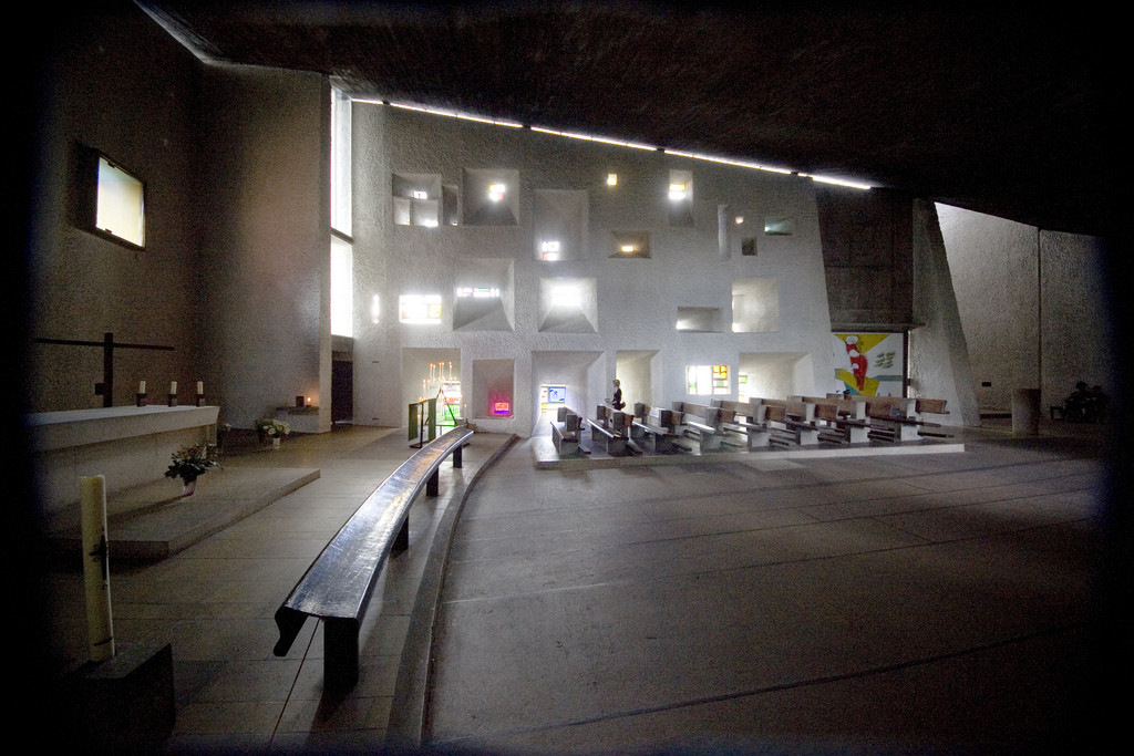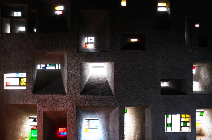 Ha a fény és a liturgia, de különösen a fény és a templomépület kölcsönhatására gondolok, a különféle elméletek előtt jó néhány templomélmény jut eszembe. A legelemibb templomi fényélményem egy modern templomépülethez kapcsolódik. Nyári délután érkezünk meg a franciaországi Ronchamps zarándoktemplomához, közel a svájci határhoz. Építésze a svájci-francia Le Corbusier, akinek más épületei, különösen az unité d’habitation néven ismert lakótelepi tömbjei, azok uniformizáló, némileg elidegenítő emberképe éles kontrasztban áll a ronchamps-i kápolna ihletett szabálytalanságával, szerves formáival, áhítatra hangoló zegzugos belső tereivel, emberszabású, otthonos monumentalitásával.