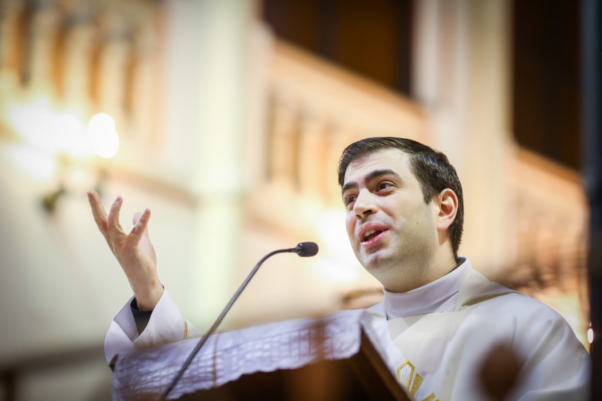Végül jó, ha a homília megteremti a kapcsolatot azzal, ami következik, tehát átvezet az Eucharisztia ünneplésébe. Hiszen Jézus úgy tanít, hogy cselekszik, önmagát adja értünk.