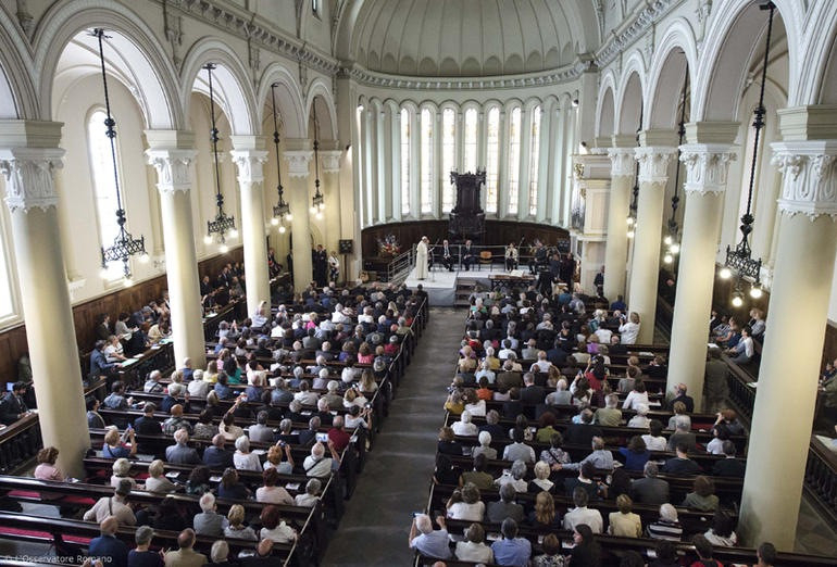 Ferenc pápa látogatása a torinói valdens templomban 2015. június 22-én
