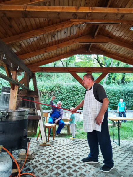 Négy óra után már jön az új munkaerő, ők délelőtt munkahelyeiken voltak. Most már az üst széléről le lehet lopkodni az oda kiszáradt lekvárdarabokat, hiszen lassan már tíz centivel lentebb van a lekvár teteje, mint amikor elkezdtétek.