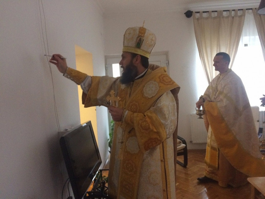 A Szent Liturgia után valamennyi jelenlévő átvonult az új parókia udvarára, a püspök pedig megszentelte az épületet.
