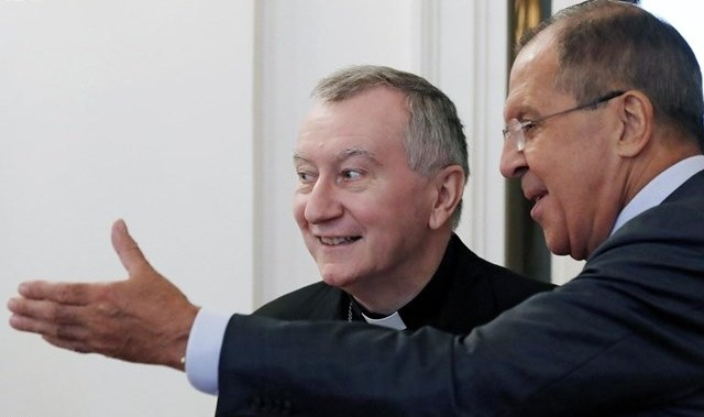 Kedden délelőtt Szergej Lavrov orosz külügyminiszterrel tárgyalt a vatikáni diplomácia vezetője, majd sajtókonferencia keretében nyilatkozatot tett közzé. Ebben kiemelte utazása célját: a külügyminiszterrel, majd a Putyin elnökkel folytatandó megbeszélések során Ferenc pápa elkötelezettségét képviseli a két fél kapcsolatában és a fontos nemzetközi kérdésekben.