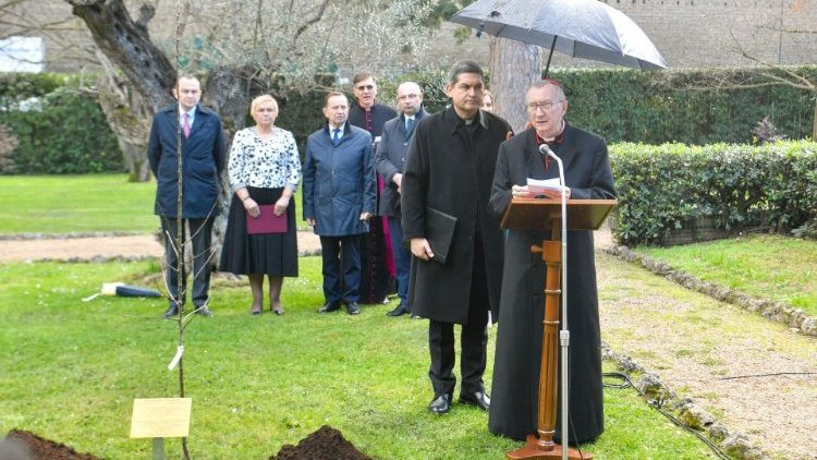 Az almafa „élő emlékmű, igazi gyümölcsöt terem, a vértanúk vére által termett gyümölcsök szimbóluma” és egyben emléke azoknak a pusztító tragédiáknak, amelyeket a mindenütt és mindig gyűlöletet, szenvedést és halált hozó totalitarizmusok okoztak – hangsúlyozta Pietro Parolin bíboros államtitkár a Vatikáni Kertekben, néhány lépésre a lourdes-i barlangtól, a pápák és a zarándokok imahelyétől végzett szertartáson.