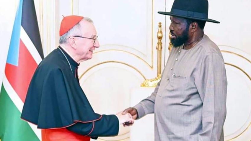 Az elnöki hivatal sajtóközleménye szerint Parolin bíboros itt átadta Ferenc pápa jókívánságait, majd az elnök és a bíboros a békefolyamattal és a 2024-re tervezett választásokkal kapcsolatos különböző kérdésekről tárgyalt. Parolin bíboros továbbá felszólította Dél-Szudán lakosságát, hogy „vállalják fel a béke és a kiengesztelődés lelkületét annak érdekében, hogy harmonikus társadalmat építsenek az országban”.