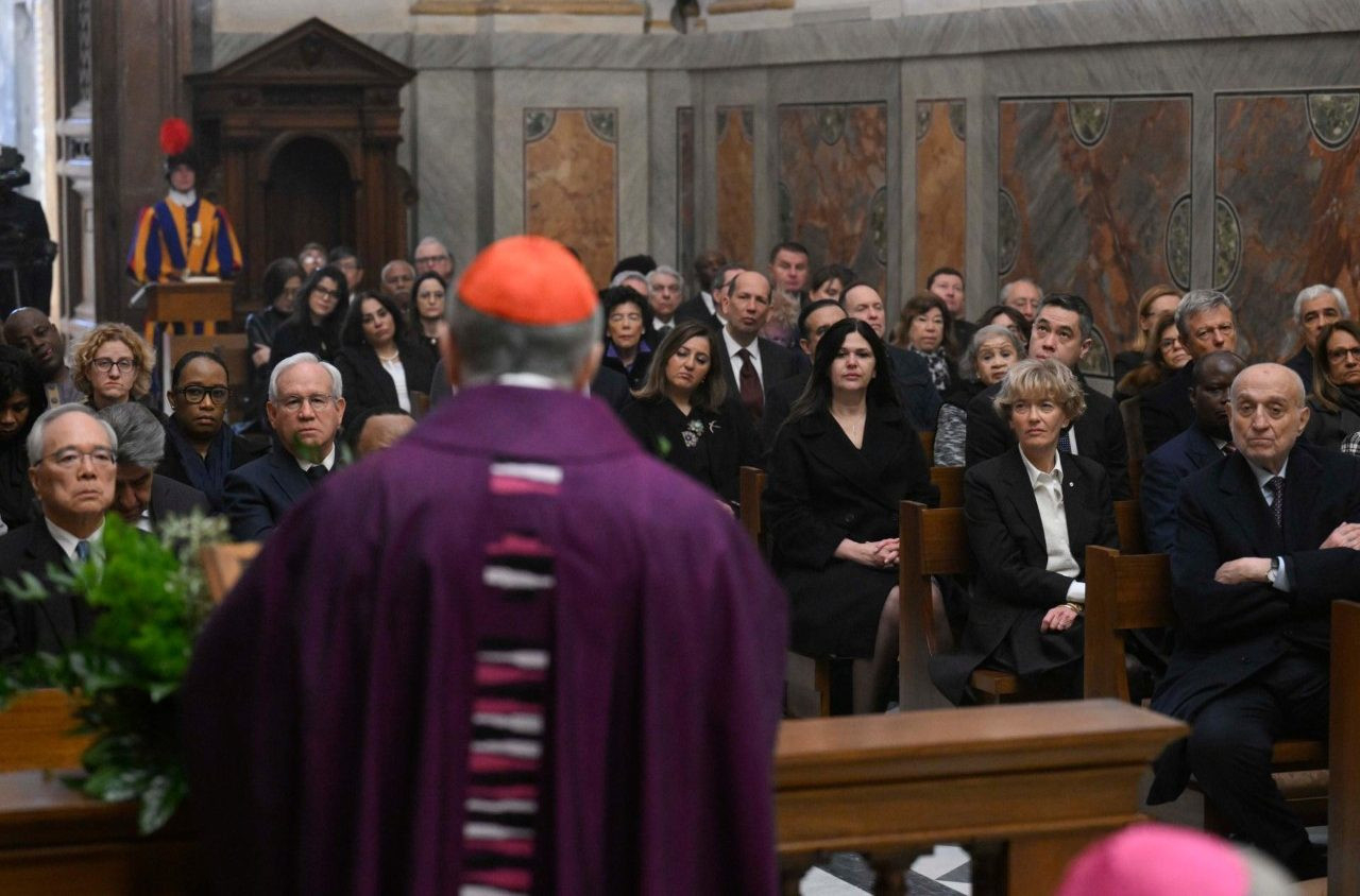 A Szentszékhez akkreditált nagykövetek és a diplomáciai testület tagjai péntek délelőtt 10.30-kor gyűltek össze az Apostoli Palota Szent Pál-kápolnájában, hogy részt vegyenek a szentmisén, amit azért kértek, hogy együtt imádkozhassanak Ferenc pápáért.