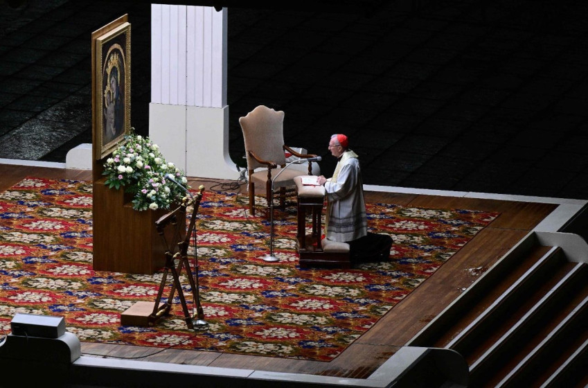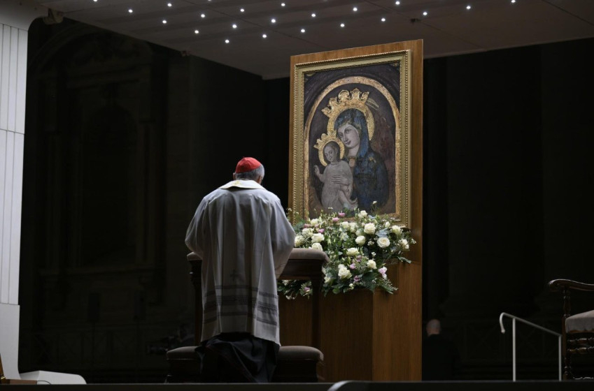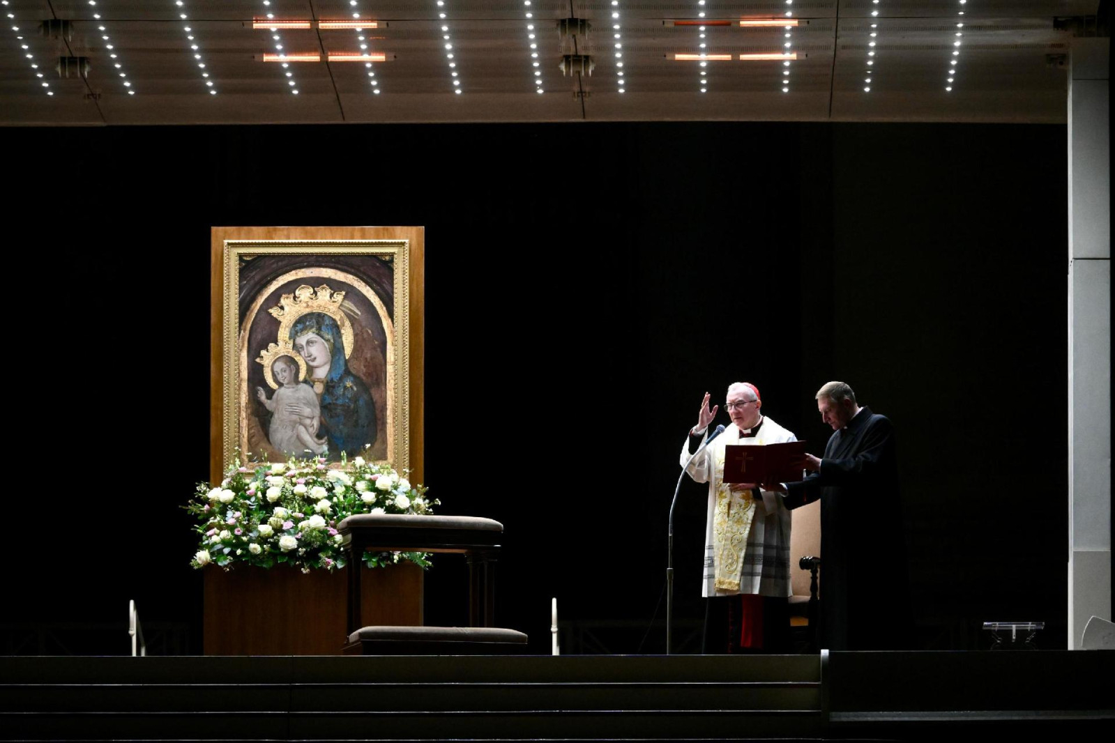 „Ma estétől mi is csatlakozni szeretnénk, nyilvánosan, itt, az ő házában, a szent rózsafüzér imádságával – jelentette ki Parolin. – A Szentatyát a Boldogságos Szűz Mária hathatós közbenjárására bízzuk, akit a Salus Infirmorum (Betegek Gyógyítója) néven hívunk segítségül.