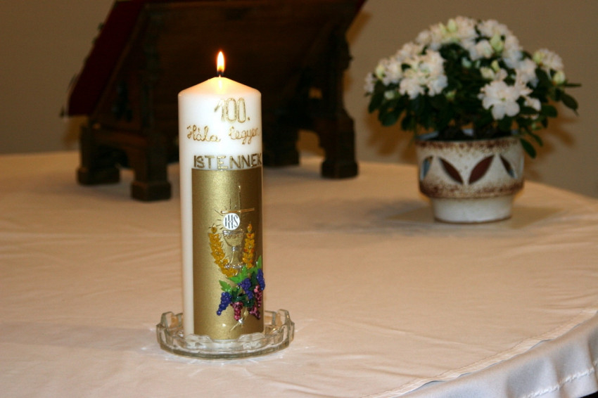 Az ünnepségről nem hiányozhatott a torta és a 100-as számot formáló gyertya elfújása sem.