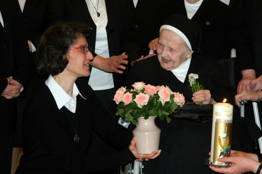 A szerzetesközösség a vasárnapi szentmisében adott hálát az ünnepeltért. Az oltáron az egykori tanítványok által ajándékozott gyertya égett. A mise végén Kutas M. Janka házfőnöknő a 100. zsoltárt olvasta fel.