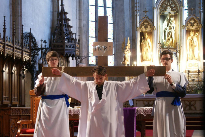 Kolozsváron a Báthory István Elméleti Líceum jelenlegi és hajdani diákjai elevenítették meg Jézus kínszenvedését.