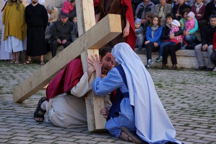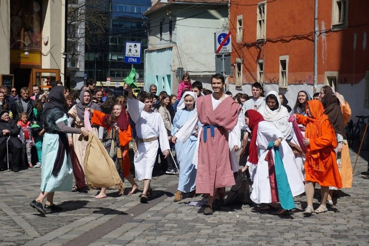 Marosvásárhelyen több százan gyűltek össze, hogy megtekintsék a fiatalok által előadott passiójátékot.