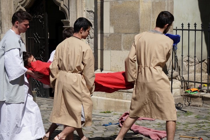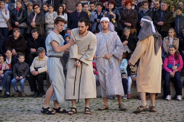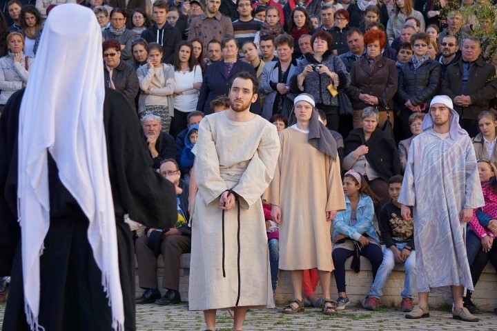 A Csíksomlyói Passió Csoport idén is a kegytemplom előtti téren mutatta be a misztériumjátékot.