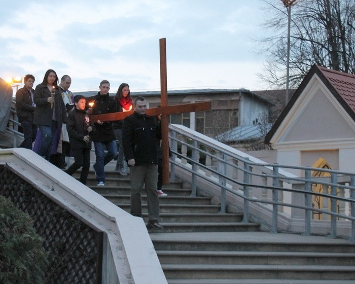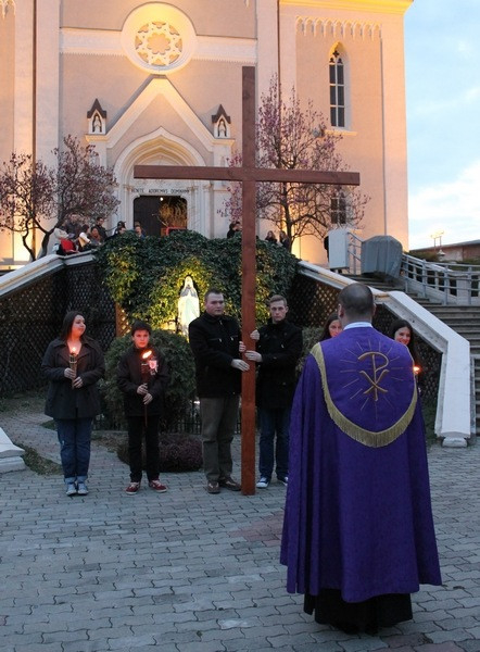 A keresztút mélységeiről elmélkedett az ifjúság virágvasárnap este a Kálvária-templom udvarán, Szatmárnémetiben. A keresztúton, melyet a püspökség ifjúsági irodája és a szatmárnémeti plébániák ifjúsága szervezett, fiatalok és felnőttek egyaránt részt vettek. A különleges hangulatú keresztúti ájtatosság a nagyböjtöt átfogó imaórák zárását jelentette.