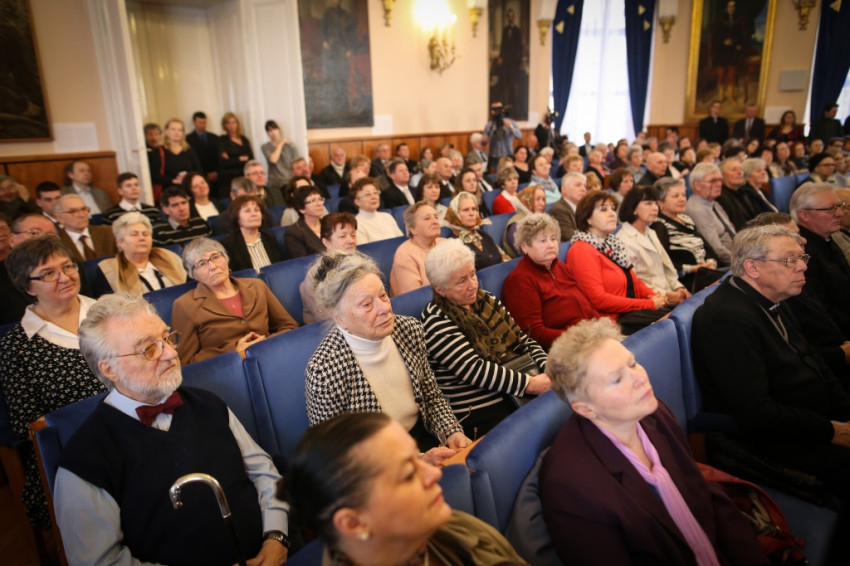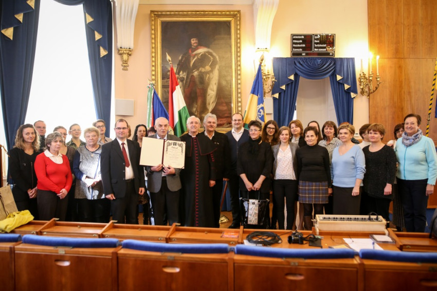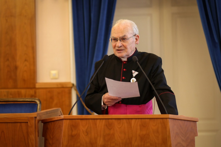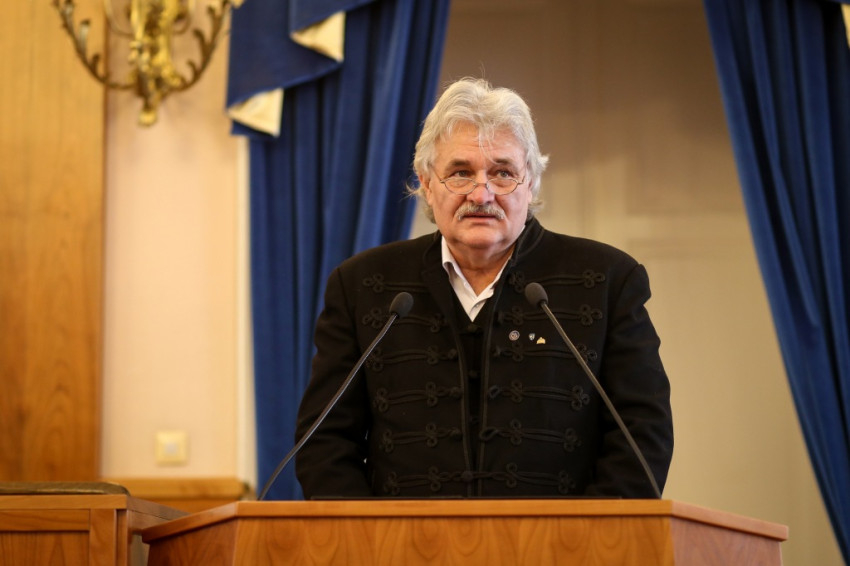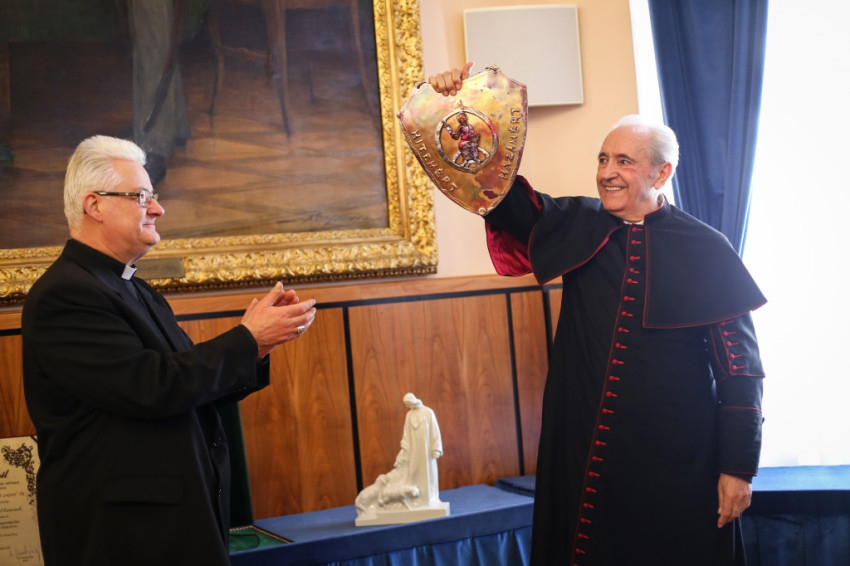 A Hit pajzsa díj a hűség díja is. A hűségé, ami manapság nem divatos fogalom. Az alapítók egy pajzsot adnak át a díjazottnak: e mögé azok az emberek sorakozhatnak fel, akik tanúbizonyságot tettek életük során embertársaik, Egyházuk és Isten iránti hűségükről. Ezért veheti át a kuratórium döntése alapján Győző atya is a kitüntetést – zárta köszöntőjét Tarnai Richárd.