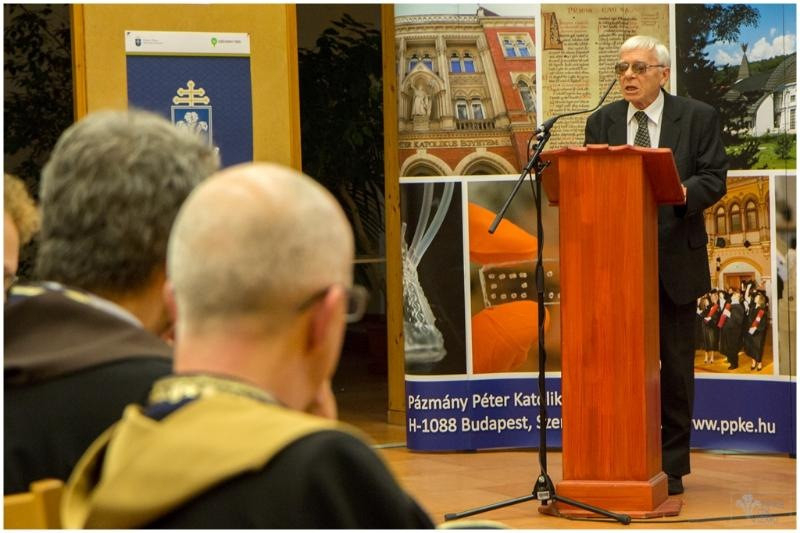 Franco Anelli, a milánói Szent Szív Katolikus Egyetem rektora, aki erre az alkalomra érkezett Magyarországra, előadásában az egyetemről, az új humanizmusról és a tudás egységéről beszélt. Határozottan kijelentette, hogy az egyetemeknek az erkölcsös tudomány talaján kell állniuk, és tevékenységük célja nem elsődlegesen a piac kiszolgálása, hanem a felhalmozott emberi ismeret minden területen történő továbbfejlesztése. Hangsúlyozta: ebben a feladatban a katolikus egyetemeknek komoly felelősségük van szerte a világon.