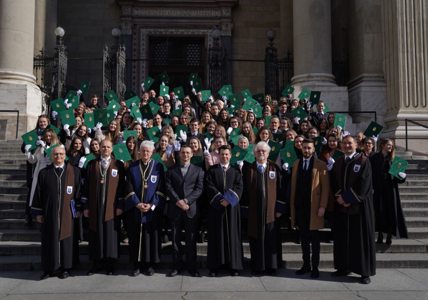 A ceremónia után a friss diplomásokról a bazilika főlépcsőjén készült közös fénykép.