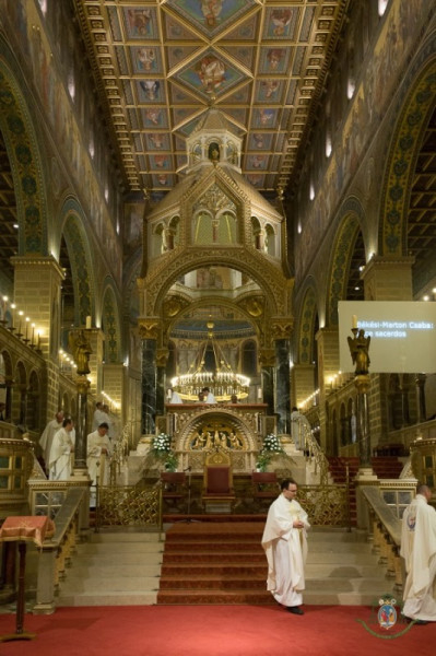 „Ezeréves kapcsolatra tekintünk vissza – hangsúlyozta Udvardy György. – Hálával tekintünk elődeink hitére, és átérezzük saját felelősségünket. A történelmi események mindig a hétköznapok valóságában történnek. Nem nagyobb a felelősségünk, mint másoknak volt, de a mai nap felelősségével szembe kell néznünk. Nagyon hálás vagyok azért, hogy az egyházmegye második püspöke szent püspök. Egészen bizonyos, hogy a szentség nemcsak egy példa, hanem kegyelmi valóság is: hatással van a mi döntéseinkre is.”