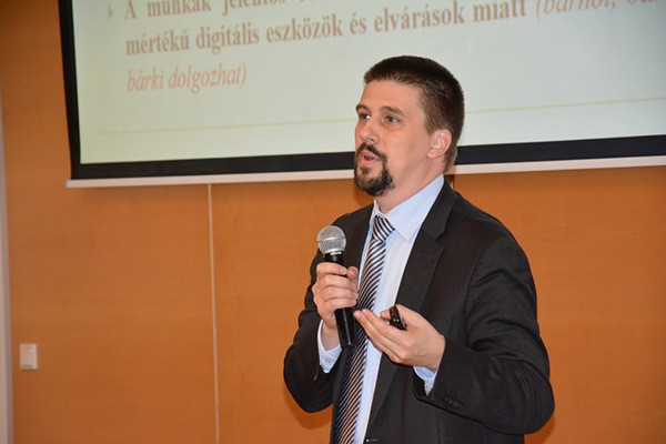 A délelőtt utolsó előadópárosa, a Microsoft két fiatal munkatársa, Balla Árpád és Pilling Dóra ismertette a Microsoft Innovatív Iskola Programot, a sok újítást, alkalmazást, szolgáltatást és a bennük rejlő számos lehetőséget, amit az együttműködés kínál a pedagógusoknak.