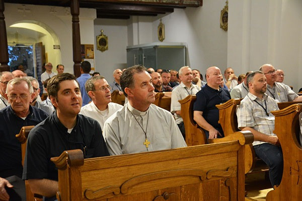 A látogatás a templomban folytatódott, ahol Ábrahám Béla tartományfőnök ismertette Péliföldszentkereszt szalézi múltját és jelenét. A magyar rendi elöljáró a nemrégiben felújított templomot is bemutatta, majd közösen elimádkozták a vesperást. A találkozó ünnepi vacsorával zárult, amit a rendház ebédlőjében szolgáltak fel.