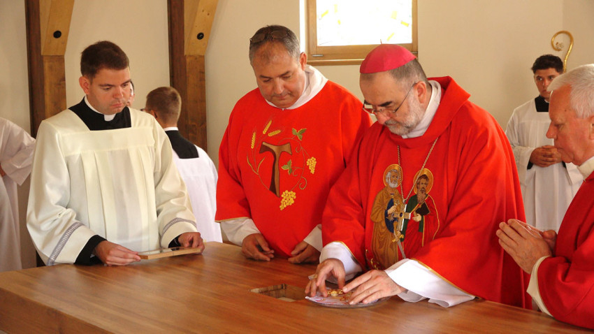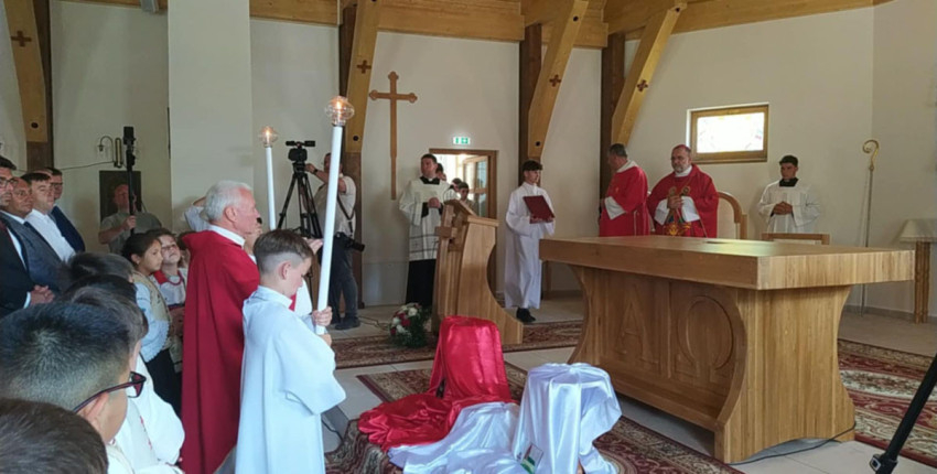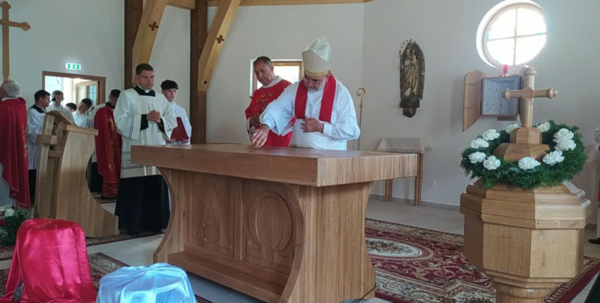 Az oltárasztalt és a falakon a szentelési kereszteket krizmával jelölték, majd meggyújtották és megáldották a húsvéti gyertyát is. Az oltárasztalban elhelyezték Szent Ince és Szent Restitutus vértanúk ereklyéjét; majd népviseletbe öltözött hívek díszítették, helyezték el rajta a gyertyákat, virágokat.