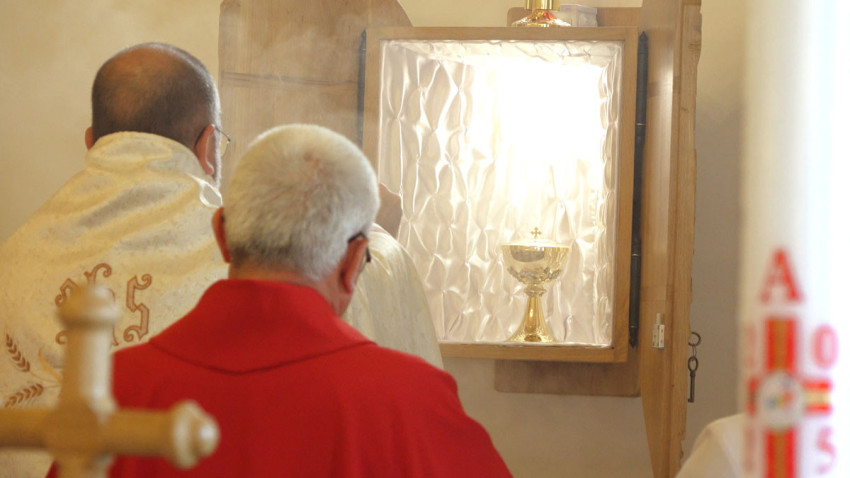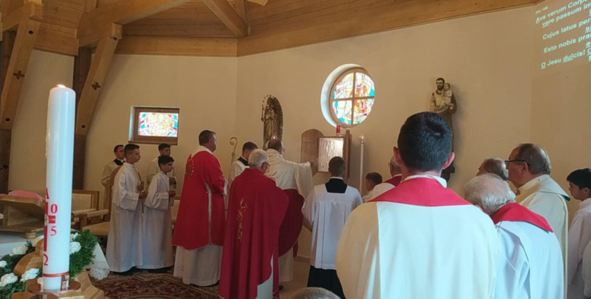 Az eucharisztia ünnepléséhez szintén népviseletbe öltözött fiatalok vitték az oltárhoz az adományokat. A tabernákulumot a szentáldozás után szentelték meg.