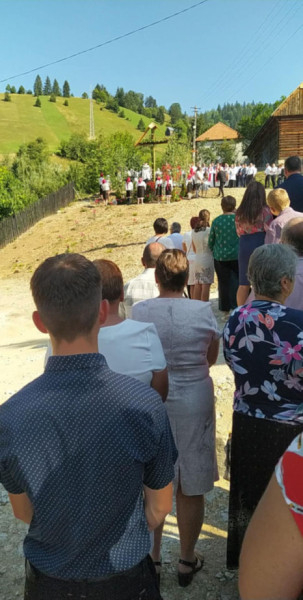 A hívek számára könnyebben megközelíthetőbb területen a jubileumi szentév emlékére keresztet is állítottak – ennek megáldásával kezdődött a templomszentelés ünnepsége.