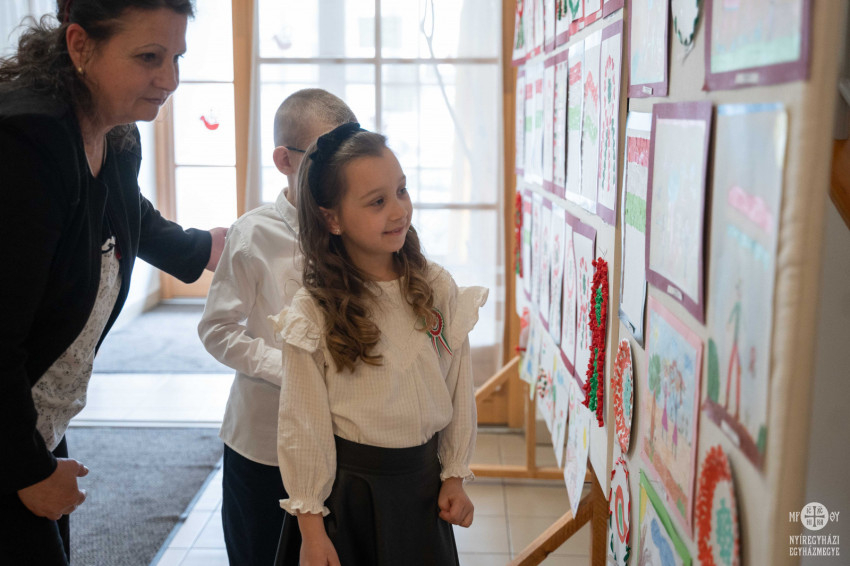 A verseny szünetében a Szent Miklós-os óvodások nemzeti lelkületű rajzaiból erre az alkalomra készített kiállítását tekinthették meg a vendégek.