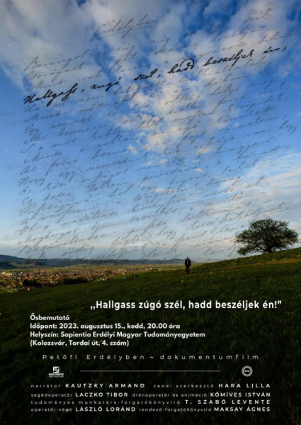 Az ismeretterjesztő film Petőfi Sándor erdélyi útjait mutatja be. A költő egy évet töltött Erdélyben, utazásai helyszíneit, körülményeit, részleteit mutatja be a Hallgass zúgó szél, hadd beszéljek én! Ez az első olyan nagyszabású dokumentumfilm, amely Petőfi erdélyi kötődéseit összegzi. Televíziós bemutatója ősszel várható. Azt követően az alkotók iskolai vetítésekre is ajánlják, magyarórák keretében – segítve ezzel, hogy az újabb irodalomtörténeti kutatások többekhez eljussanak.
