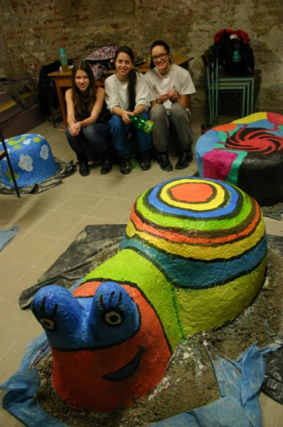 A környezettudatosság jegyében az érdeklődők az iskola alagsorában megtekinthették az újonnan felállított pillekő bútorokat.