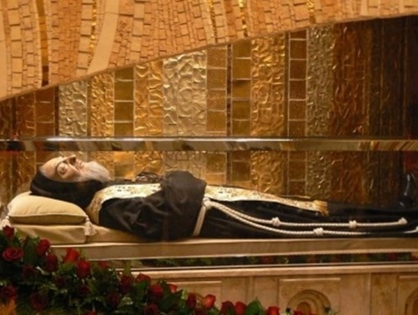Másnap, február 16-án, hétfő délután San Giovanni Rotondo lakóit a Pio atyáról nevezett főtérre várják, ahol a városháza előtt Michele Castoro érsek ünnepélyes áldást ad, majd Pio atya holtteste visszakerül a róla elnevezett templom kriptájába. Az altemplom körfolyosóját Ivan Rupnik szlovén jezsuita mozaikművész körbefutó kettős ikonciklusa díszíti, Assisi Szent Ferenc és Pietrelcinai Szent Pio atya életéből vett események ábrázolásával.