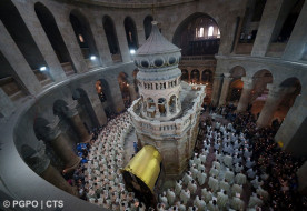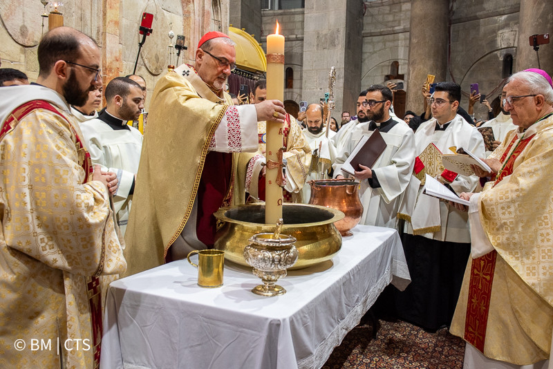 Ez alatt a három, imádságban és liturgiákban gazdag napban minden e körül a kicsiny edikula körül, annak a sírnak a maradványai körül forog, amelyről a mai evangélium szól, és amelyet azóta is itt őrzünk és tisztelünk. A jeruzsálemi liturgia e hely köré épül, akárcsak az egész Egyház liturgiája. Valójában innen merítjük azt a fényt, amely az egész keresztény életet megvilágítja. Mi, a Jeruzsálemi Egyház pedig azok kell, hogy legyünk és azok akarunk lenni, akik elsőként hirdetik ennek a világosságnak az érkezését, és elviszik a világnak. Egyszerű és ünnepélyes módon tettük ezt nem sokkal ezelőtt, amikor a Szent Sírból meggyújtottuk a húsvéti gyertyát. Az üres sírból jövő Fény a húsvéti Bárány világossága, amelyről a Jelenések könyve beszél („templomot nem láttam benne: az Úr, a Mindenható Isten és a Bárány a temploma” – Jel 21,22), amely megvilágítja a Szent Várost és az Egyházat.