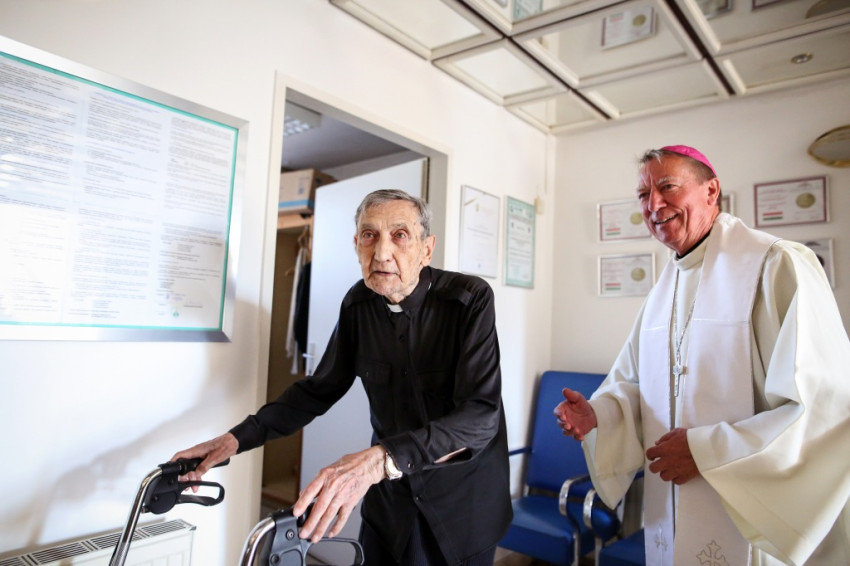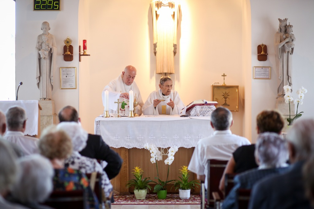 Örvendező, hálatelt szívvel ünnepelt a Szent Erzsébet Otthon lakóközössége, köztük az itt élő paptestvérek, többek között a vasmiséjét tavaly ünneplő Futó Károly atya is. Dobozy István őket köszöntve így fogalmazott: „A mi szerepünk, hogy az itt élők lélekben talpon hordozzák öregségüket.”