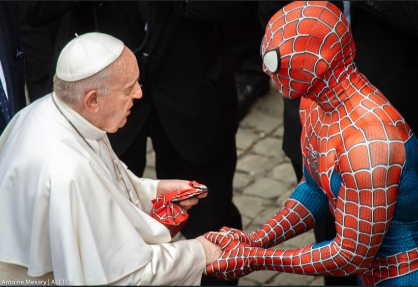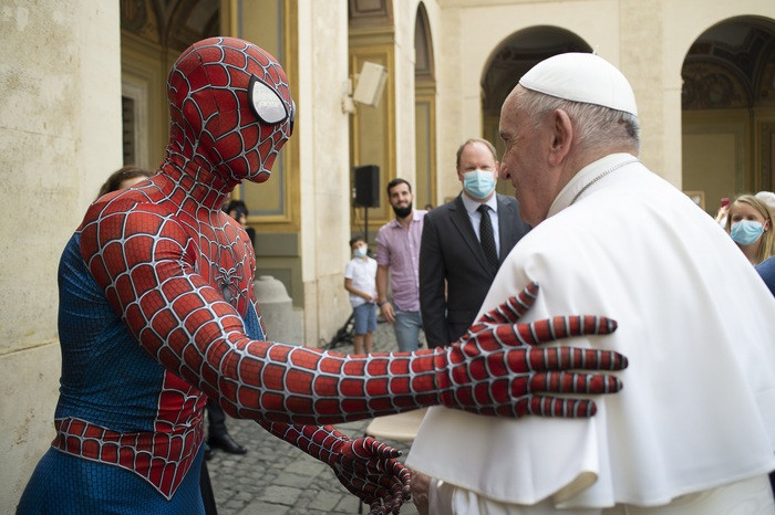 Tökéletes Pókember jelmezében türelmesen állt a tömegben a VIP-körzetben Mattia Villardita, míg hozzá is elért Ferenc pápa, és kezet foghatott vele. Addig is: aki csak látta, azon tanakodott, vajon az igazi Pókember várakozik-e a Szent Damazusz-udvarban.