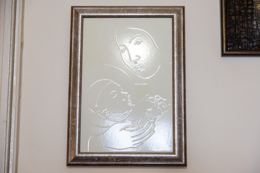 – Mindenképpen. Visszatérő témám a kereszt és a megfeszített Megváltó – sosem az összetört, hanem a karját a kereszten is ölelésre táró Krisztus alakja –, de a Madonna-ábrázolások is kiemelt helyet kapnak munkásságomban. Emellett a templomterek díszítése, a liturgikus terek méltóvá tétele is nagyon szép ajándéka az eddigi pályámnak; több ilyen lehetőségem is adódott. Hívő ember vagyok, sokat jelent számomra, ha magam is részt vehetek egy-egy ilyen munkában. Az egyik legkedvesebb ezek közül a budai Szent Anna-templomhoz kötődik: ide a templom jubileuma, illetve a Nemzetközi Eucharisztikus Kongresszus emlékére készítettem egy-egy nagyobb méretű képet. Hasonló művem található a budai kapucinus templomban is. Ugyancsak fontos és emlékezetes munkám Jánosa Domokos atya felkérésére az Budapesti Egyetemi Katolikus Gimnázium és Kollégium kápolnája oltárképének elkésztése. Ennek Madonnájához (Magyarok Nagyasszonya – a szerk.) egyébként a feleségem volt a modell, az ő hosszúkás arca és finom ívű keze inspirált, a Kisjézus alakjának megformálásánál pedig az első szülött fiam – lényegében őket mintáztam meg egy apró korongokból álló tűzzománcmozaikban. Külön érdekessége ennek a kápolnának, hogy a falakat körben az édesapám által készített keresztút díszíti, amit a már említett pontozásos-lyukasztós technikával alkotott. Budán a várhegy aljában található a Kodály Zoltán Magyar Kórusiskola, ahol ugyancsak a kápolna díszítésében vehettem részt a képeimmel.