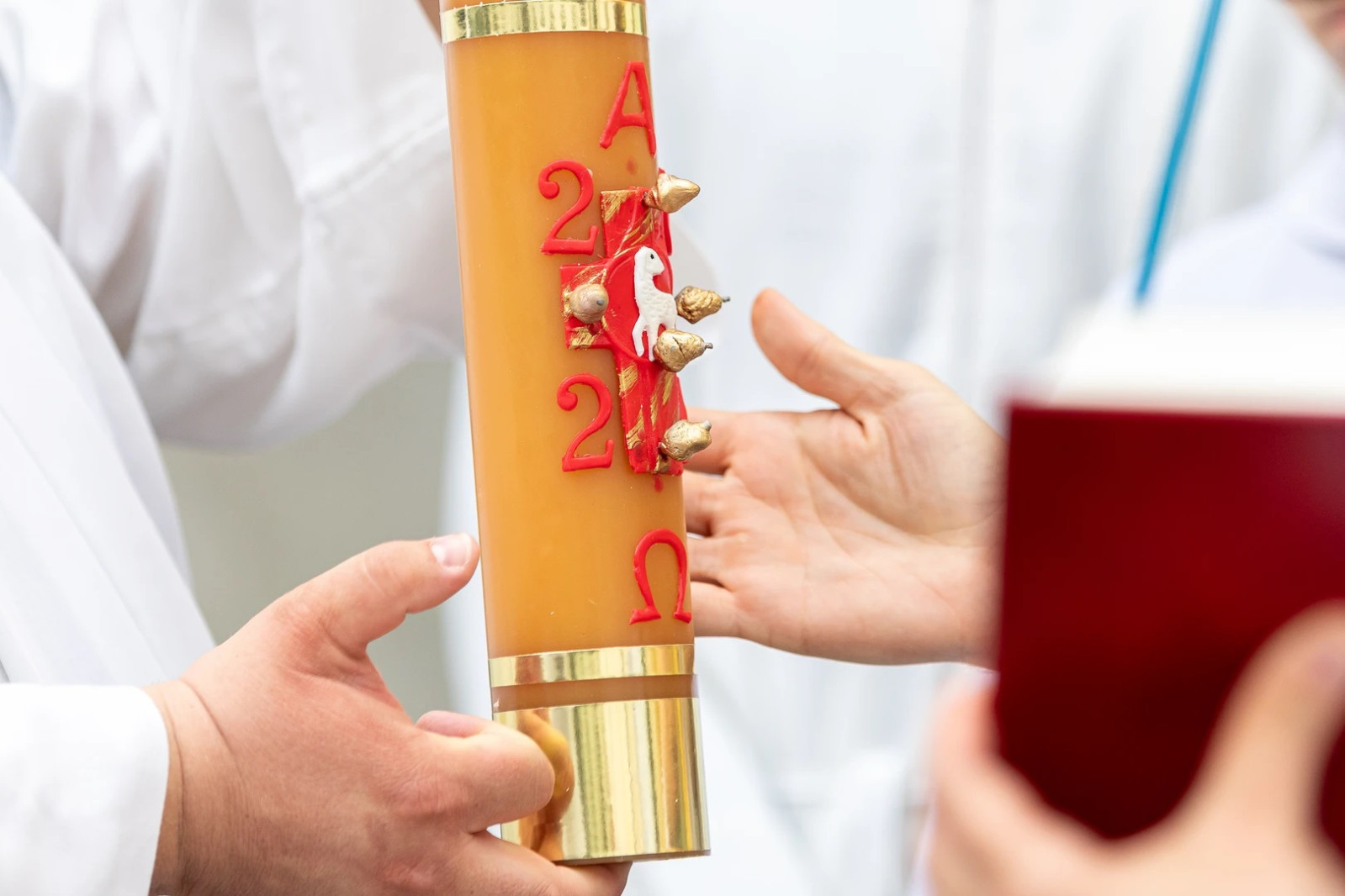 A nagyszombati csendet az örvendetes húsvéti vigília ünneplése váltotta fel. A szentmise végén körmenetet is tartottak a templom falain kívül.