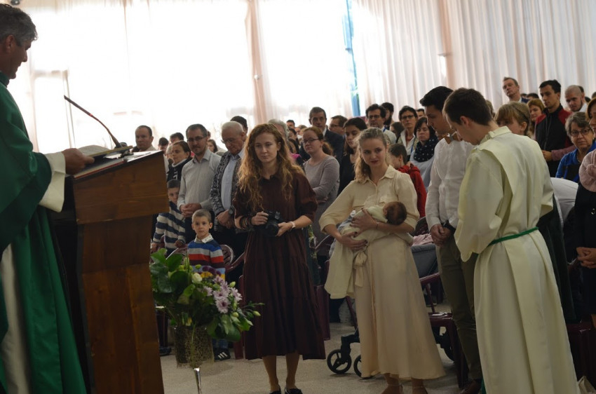 A vasárnapi szentmisét a Comenius Egyetem kápolnájában ünnepelték fiatal szlovák családok, seregnyi gyerek társaságában.