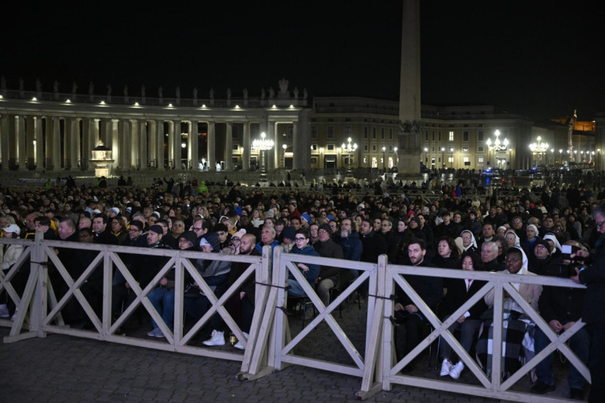 A Szent Péter-bazilika előterében elhelyezett Mária, az Egyház Anyja ikon előtt Prevost bíboros, a Püspöki Dikasztérium prefektusa vezette a rózsafüzér imát a Római Kúria bíborosai, prelátusai, papjai, férfi és női szerzetesei, valamint a római egyházmegye híveinek sokasága jelenlétében, akik február 24-e óta mindennap este 9 órakor összegyűlnek a Szent Péter téren, hogy a pápa gyógyulását a Szűzanya közbenjárására bízzák.