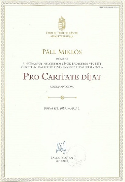 Pro Caritate díjban részesült Páll Miklós parókus is, a hátrányos helyzetben lévők érdekében végzett önzetlen karitatív tevékenysége elismeréseként. Páll Miklós hét éve tevékenykedik karitászigazgatóként a Miskolci Egyházmegyében, a tolcsvai parókiai szolgálatok mellett.