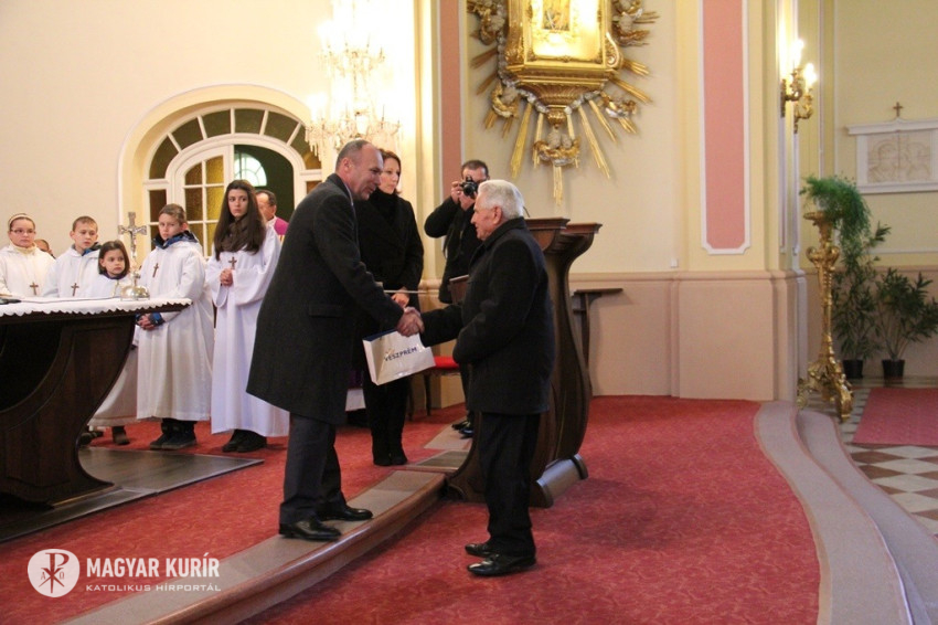 Advent első vasárnapján a főpásztor hangsúlyozta, hogy az új egyházi év kezdetén valóban foglalkozzunk lelkünk üdvösségével. Homíliájában visszaemlékezett Urunk eljövetelére, az első karácsonyra. A díj átadására a szentmise végén került sor. Sótonyi Mónika kulturális referens ismertette Simon Pál munkásságát, majd az elismerést Veszprém megyei jogú város nevében Porga Gyula polgármester adta át.