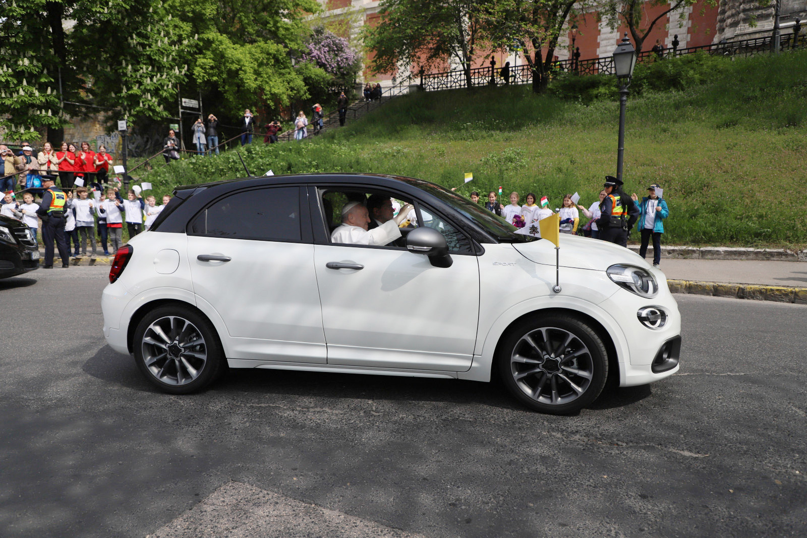 Magyarországon Budapest utcáin járva ugyancsak egy ilyen Fiat 500-assal közlekedik a pápa.