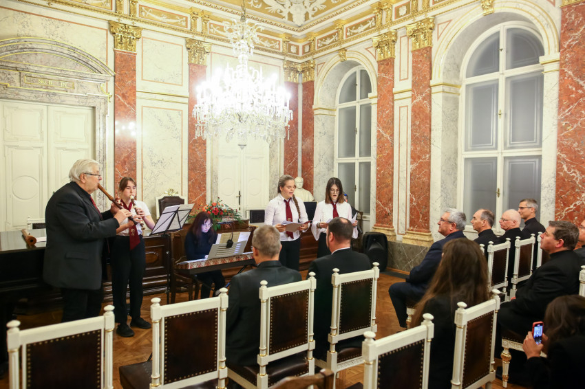 Az ünnepi alkalmon a Weiner Leó Katolikus Zeneiskola és Zeneművészeti Szakgimnázium Régizene Együttesének előadását hallhatták a jelenlévők.