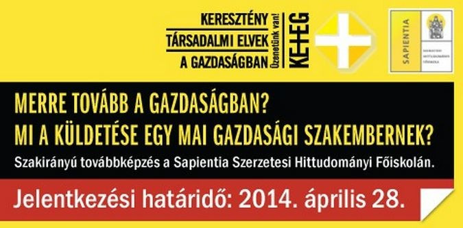 A KETEG a 2014/15-ös tanévben is indít évfolyamot, melyben az újfajta, értékelvű gazdasági gondolkodást tradicionális elvekre és elemekre alapozza, a közgazdasági, társadalomtudományi, filozófiai/teológiai tantárgyblokkok integrációjának és a Katolikus Egyház Társadalmi Tanításának segítségével. A Sapientia-Corvinus- Angelicum (római Pápai Szent Tamás Egyetem) együttműködés keretében létrejött és az ÉrMe Üzleti Hálózattal együtt fenntartott négy féléves, esti-levelező posztgraduális képzésre jelentkezés feltétele egy minimum BA szintű diploma, s minimális gazdasági ismeretek. Jelentkezési határidő: 2014. április 28.