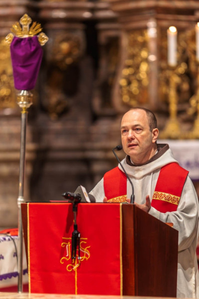 Kálmán Peregrin OFM szentbeszédében megemlékezett Prohászka Ottokár egészen Istennek adott életéről, az esztergomi szeminárium tanáraként végzett megújító papnevelő munkájáról. „Bevezette a rendszeres áldozást, a szentségimádást, a gyónást, ami abban az időben nem volt természetes a szemináriumok világában. És ezzel újította meg a következő papi nemzedéket. De szociális tevékenysége mögött is ezt láthatjuk. Prohászka így áll előttünk, mint aki Istennel való személyes megérintettségébe bevonta a korabeli Egyházat, a papnövendék-képzést, a társadalmi jelenlétet és a lelkipásztori szolgálatot. Ezért állunk meg ma is tisztelettel előtte” – hangzott el a beszédben.