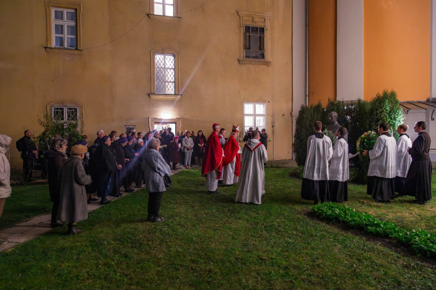 A szentmise után a hagyományokhoz híven a szeminárium udvarán imádkoztak Prohászka Ottokár boldoggá avatásáért Spányi Antal püspök vezetésével. A papnövendékek asszisztálásával koszorúkat helyeztek el bronzszobránál.