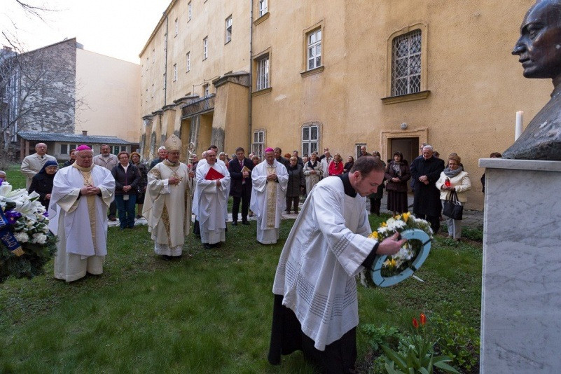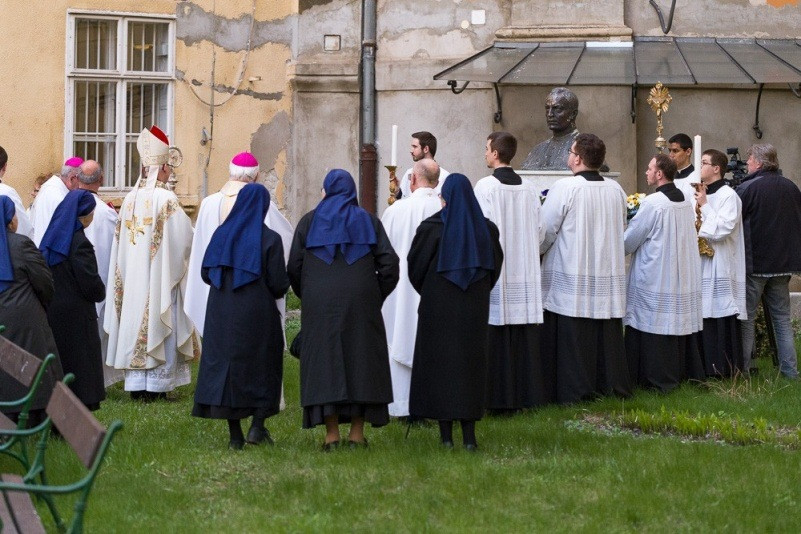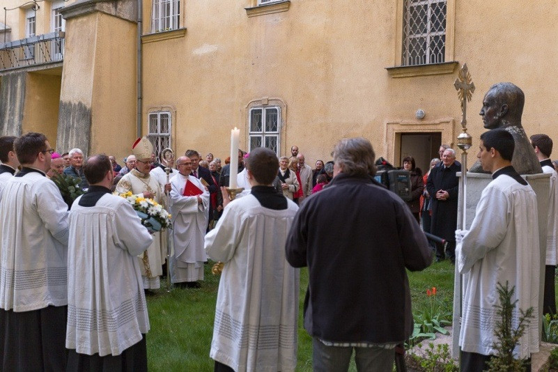 A szentmise után az egész ünneplő közösség a szeminárium udvarára vonult, ahol az egykori papnevelő tanár, Magyarország apostola és tanítója szobránál elhelyezték az emlékezés virágait. A papnövendékekkel és a hívekkel együtt imádkoztak Prohászka Ottokár boldoggá avatásáért, a püspök közbenjárásáért, a magyar egyházért és papi hivatásokért.