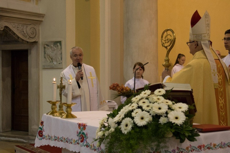 A szentmise elején Tóth Tamás esperes, plébános köszöntőjében saját élményein keresztül állított párhuzamot Szent II. János Pál pápa és Prohászka Ottokár megpróbáltatásokkal, szenvedésekkel teli, gyakorta meg nem értettséggel kísért, mégis tanúságtevő életútja között.