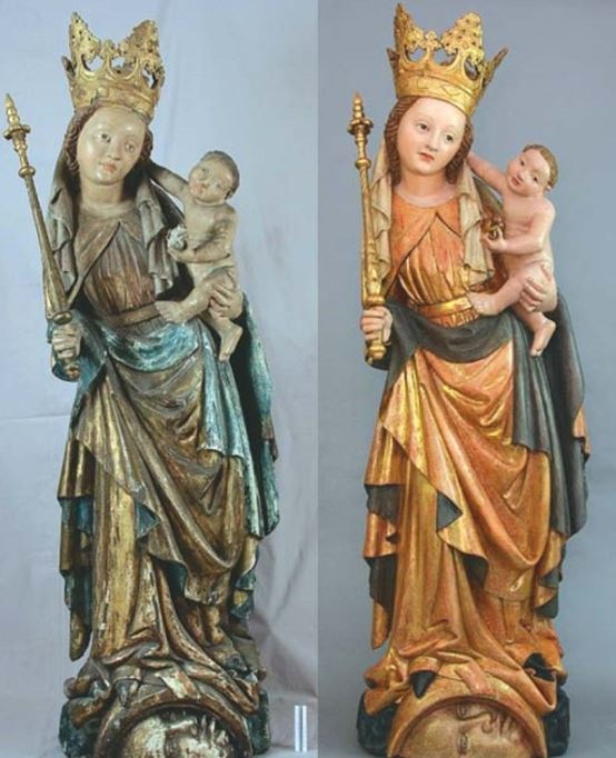 A Budavári Madonnaként emlegetett, egyetlen hársfa tömbből kifaragott hatszáz éves szoborról nincsenek adataink – nem tudni, hogy a 15. század elején ki és kinek a megrendelésére készítette a gótikus remekművet. A műalkotást Galambos Éva és Samu Erika restaurátorok állították helyre két esztendő alatt. A szobrot évszázadokon át folyamatosan karbantartották, ami bizonyítja, fontos kegyhelyről származik.